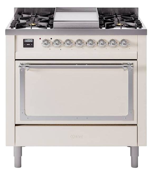 Ilve® Nostalgie II Noblesse 36'' Antique White Pro Style Dual Fuel Range with Chrome Trim