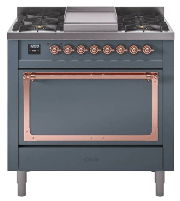 Introducing the new Nostalgie II 36" dual fuel range, a classic addition with a touch of innovation to any kitchen. This range feature sealed burners equipped with total black brass burner that has a non-stick nanotechnological coating, heavy cast iron grates, 3.5 cu. ft. total oven capacity and soft closing door system.Read More