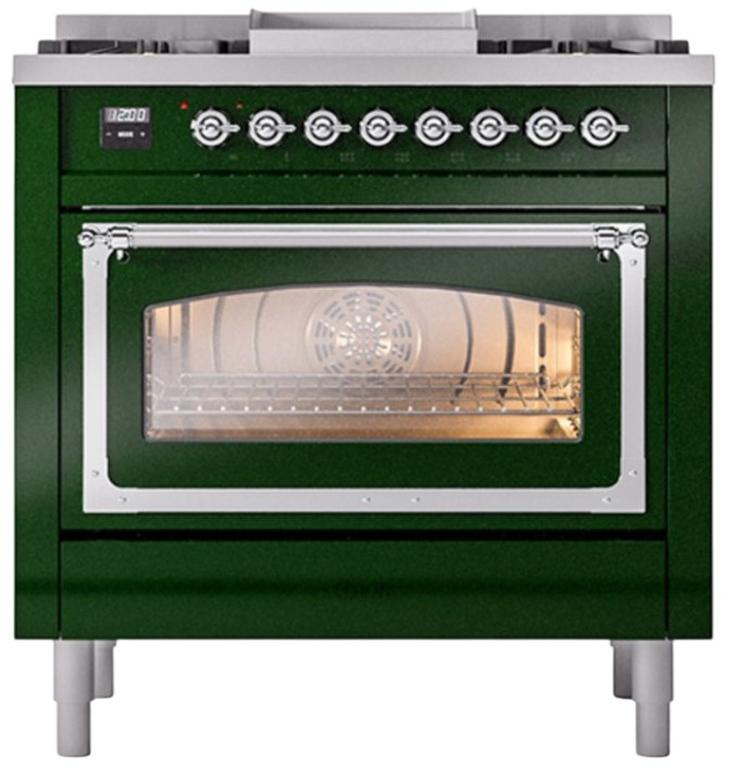 Introducing the new Nostalgie II 36" dual fuel range, a classic addition with a touch of innovation to any kitchen. This range feature sealed burners equipped with total black brass burner that has a non-stick nanotechnological coating, heavy cast iron grates, 3.5 cu. ft. total oven capacity and soft closing door system.Read More