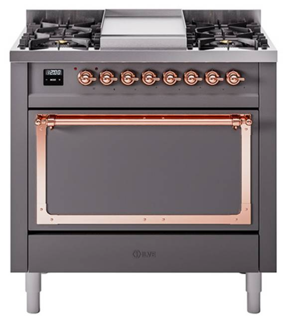 Introducing the new Nostalgie II 36" dual fuel range, a classic addition with a touch of innovation to any kitchen. This range feature sealed burners equipped with total black brass burner that has a non-stick nanotechnological coating, heavy cast iron grates, 3.5 cu. ft. total oven capacity and soft closing door system.Read More