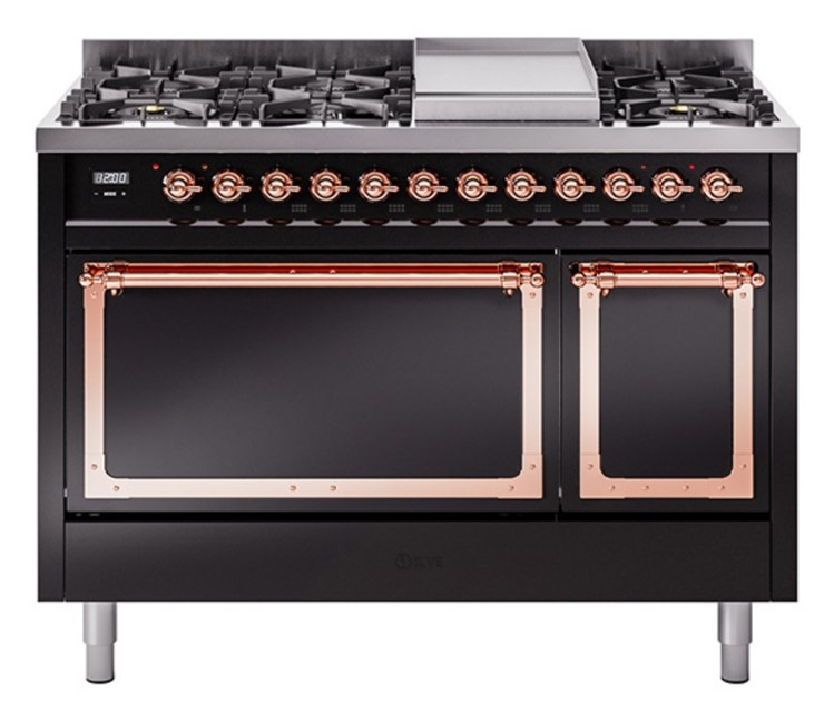 Introducing the new Nostalgie II 48" dual fuel range, a classic addition with a touch of innovation to any kitchen. This range feature sealed burners equipped with total black brass burner that has a non-stick nanotechnological coating, heavy cast iron grates.Read More