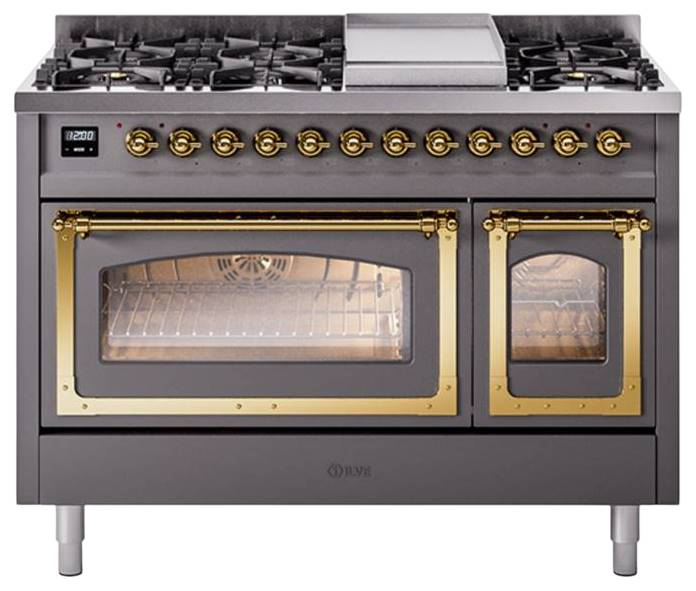Introducing the new Nostalgie II 48" dual fuel range, a classic addition with a touch of innovation to any kitchen. This range feature sealed burners equipped with total black brass burner that has a non-stick nanotechnological coating, heavy cast iron grates, 3.5 + 1.52 cu. ft. total double oven capacity and soft closing door system.Read More