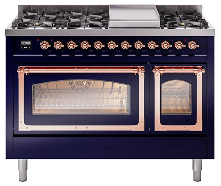 Introducing the new Nostalgie II 48" dual fuel range, a classic addition with a touch of innovation to any kitchen. This range feature sealed burners equipped with total black brass burner that has a non-stick nanotechnological coating, heavy cast iron grates, 3.5 + 1.52 cu. ft. total double oven capacity and soft closing door system.Read More