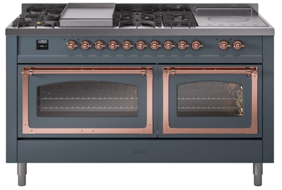 Introducing the new Nostalgie II 60" dual fuel range, a classic addition with a touch of innovation to any kitchen. This range feature sealed burners equipped with total black brass burner that has a non-stick nanotechnological coating, heavy cast iron grates, 3.5 + 2.3 cu. ft. dual oven capacity and soft closing door system.Read More