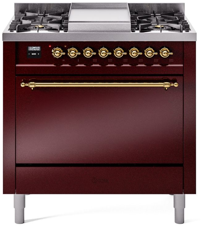 Ilve® Nostalgie II Series 36" Burgundy Pro Style Dual Fuel Range