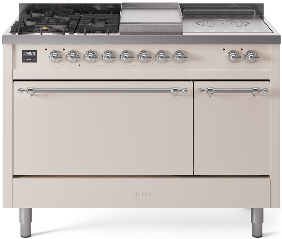 Introducing the new Nostalgie II 48" dual fuel range, a classic addition with a touch of innovation to any kitchen. This range feature sealed burners equipped with total black brass flame spreader that has a non-stick nanotechnological coating, heavy cast iron grates, 3.5 + 1.52 cu. ft. total double oven capacity and soft closing door system.Read More