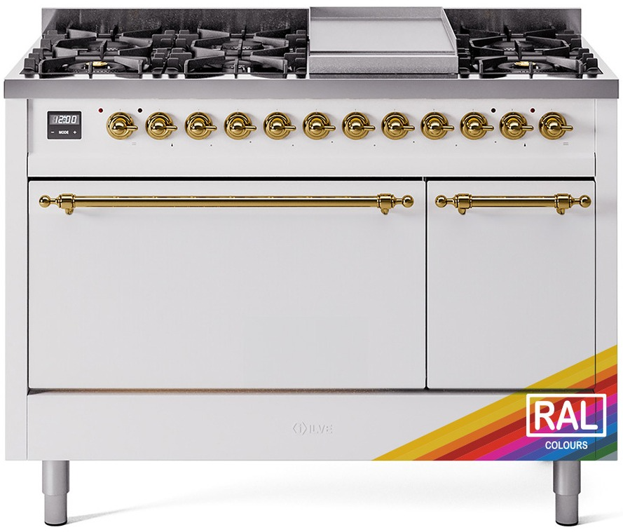Introducing the new Nostalgie II 48" dual fuel range, a classic addition with a touch of innovation to any kitchen. This range feature sealed burners equipped with total black brass flame spreader that has a non-stick nanotechnological coating, heavy cast iron grates, 3.5 + 1.52 cu. ft. total double oven capacity and soft closing door system.Read More