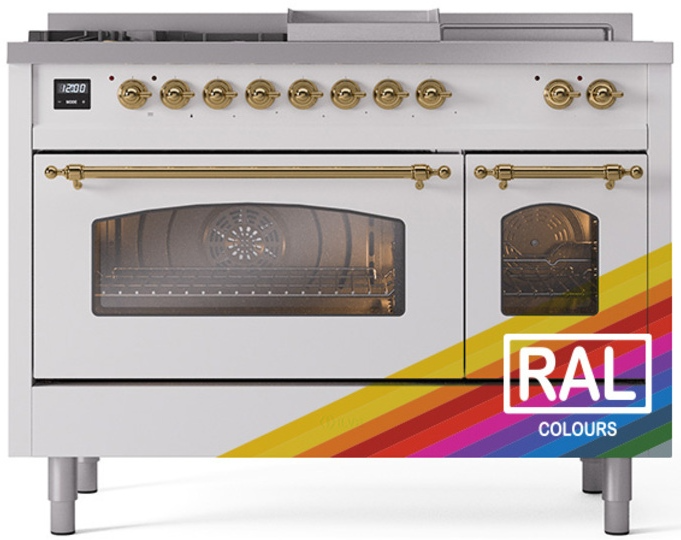 Introducing the new Nostalgie II 48" dual fuel range, a classic addition with a touch of innovation to any kitchen. This range feature sealed burners equipped with total black brass flame spreader that has a non-stick nanotechnological coating, heavy cast iron grates, 3.5 + 1.52 cu. ft. total double oven capacity and soft closing door system.Read More