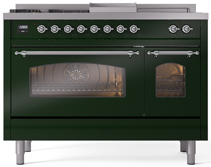 Introducing the new Nostalgie II 48" dual fuel range, a classic addition with a touch of innovation to any kitchen. This range feature sealed burners equipped with total black brass flame spreader that has a non-stick nanotechnological coating, heavy cast iron grates, 3.5 + 1.52 cu. ft. total double oven capacity and soft closing door system.Read More