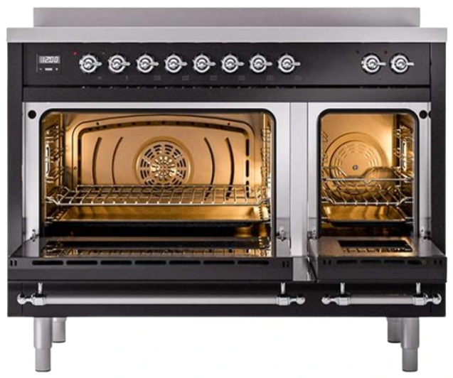 ILVE's Nostalgie II brings the ultimate cooking experience to your kitchen with many updated features that enhanced the original Classic Nostalgie with Powerful Zone Booster Function, Easy Clean Enamel Oven Interior and an updated Oven Control. This 48" induction model also features Residual Heat Indicator Triple Glass Cool Down, Updated Oven Control and Soft Closing System.Read More