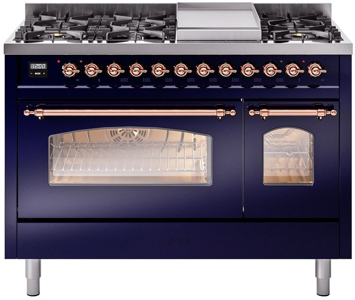 Introducing the new Nostalgie II 48" dual fuel range, a classic addition with a touch of innovation to any kitchen. This range feature sealed burners equipped with total black brass flame spreader that has a non-stick nanotechnological coating, heavy cast iron grates, 3.5 + 1.52 cu. ft. total double oven capacity and soft closing door…Read More