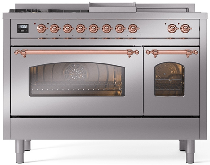 Introducing the new Nostalgie II 48" dual fuel range, a classic addition with a touch of innovation to any kitchen. This range feature sealed burners equipped with total black brass flame spreader that has a non-stick nanotechnological coating, heavy cast iron grates, 3.5 + 1.52 cu. ft. total double oven capacity and soft closing door system.Read More