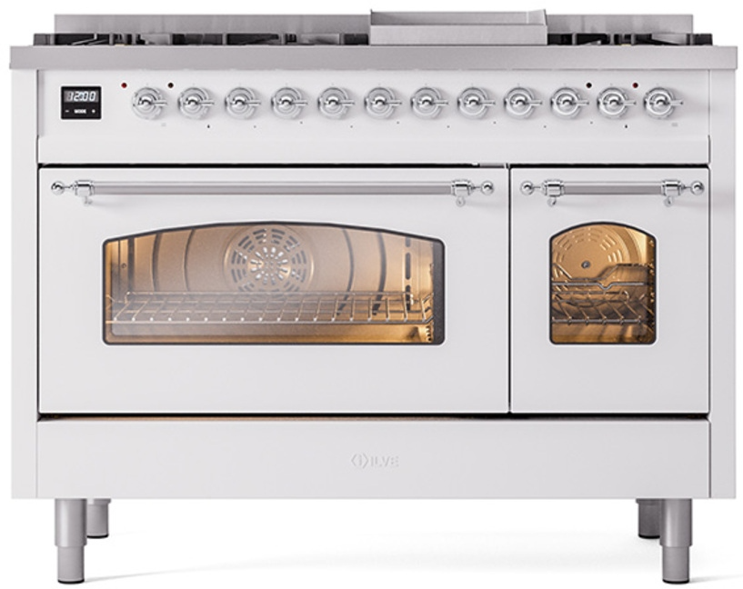 Introducing the new Nostalgie II 48" dual fuel range, a classic addition with a touch of innovation to any kitchen. This range feature sealed burners equipped with total black brass flame spreader that has a non-stick nanotechnological coating, heavy cast iron grates, 3.5 + 1.52 cu. ft. total double oven capacity and soft closing door system.Read More