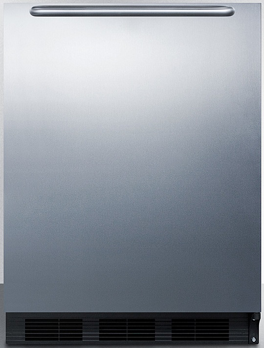Sized with a 24” footprint and 32” height, the AR5BS is an all-refrigerator with a front-breathing system that allows built-in installation under lower ADA compliant counters. The fully finished cabinet also enables freestanding use. This model comes with a black cabinet finish and reversible stainless steel wrapped door. It includes a curved towel bar style handle mounted horizontally for a modern look.